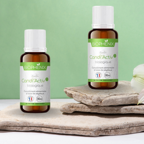 Candi'Activ 1 está formulado con aceites vegetales y esenciales que actúan de manera sinérgica para combatir la Candida albicans, reduciendo eficazmente los síntomas de la candidiasis.