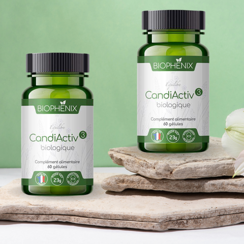 CandiActiv–3 está compuesto por extractos de plantas orgánicas seleccionadas para modular y equilibrar la proliferación de Candida albicans. Numerosos estudios han demostrado los efectos positivos de los extractos de estas plantas sobre Candida albicans.