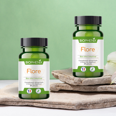 Biophénix ha seleccionado para Flore dos preciosos compuestos de origen 100% natural, con el fin de lograr una sinergia única al servicio de la microbiota intestinal: flavonoides activos de naranja y pomelo, y fibras prebióticas de acacia.